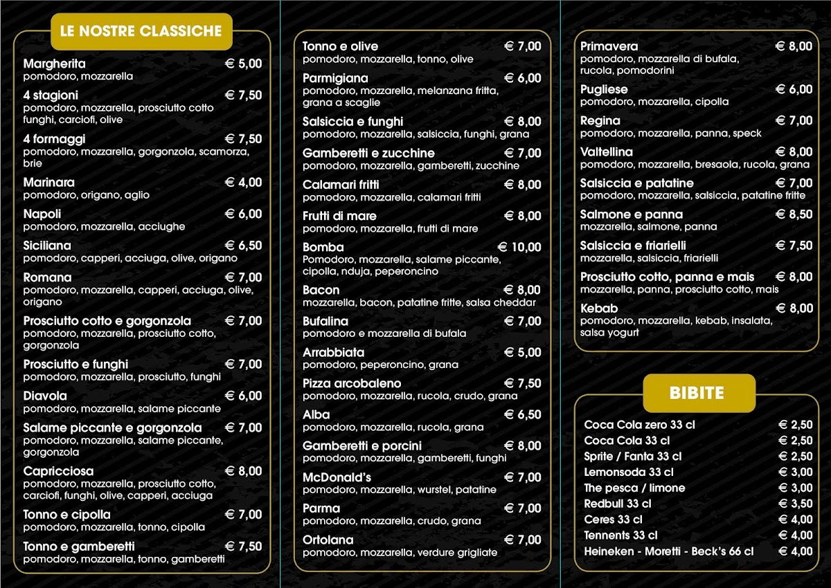 Giro pizza, Giro dolci, bibita 33cl o acqua e caffe