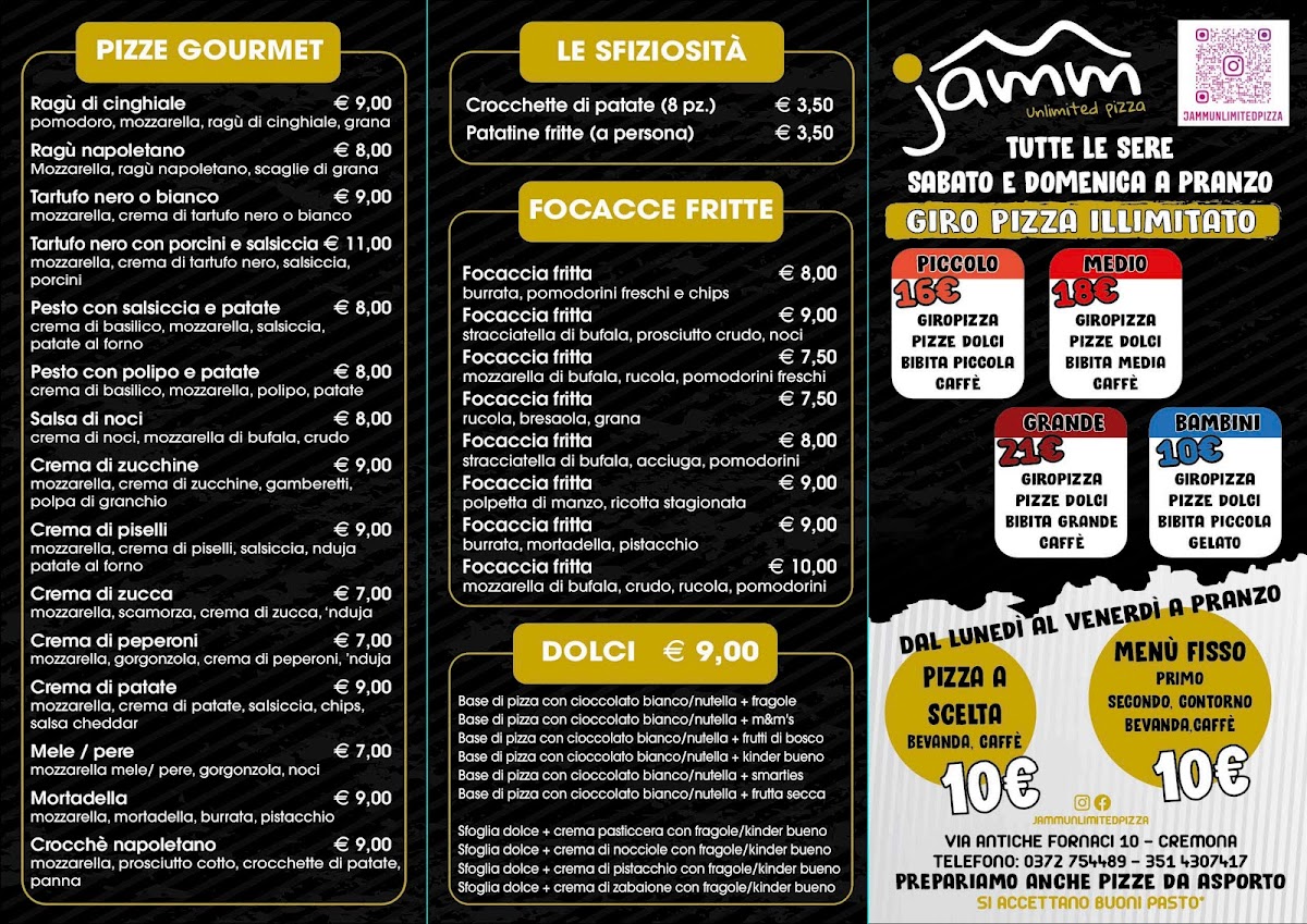 Pizzeria JAMM Cremona Menu